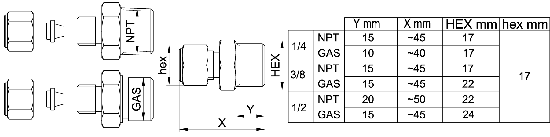 filettato 3/8" NPT sec. ANSI B 1.20.1
